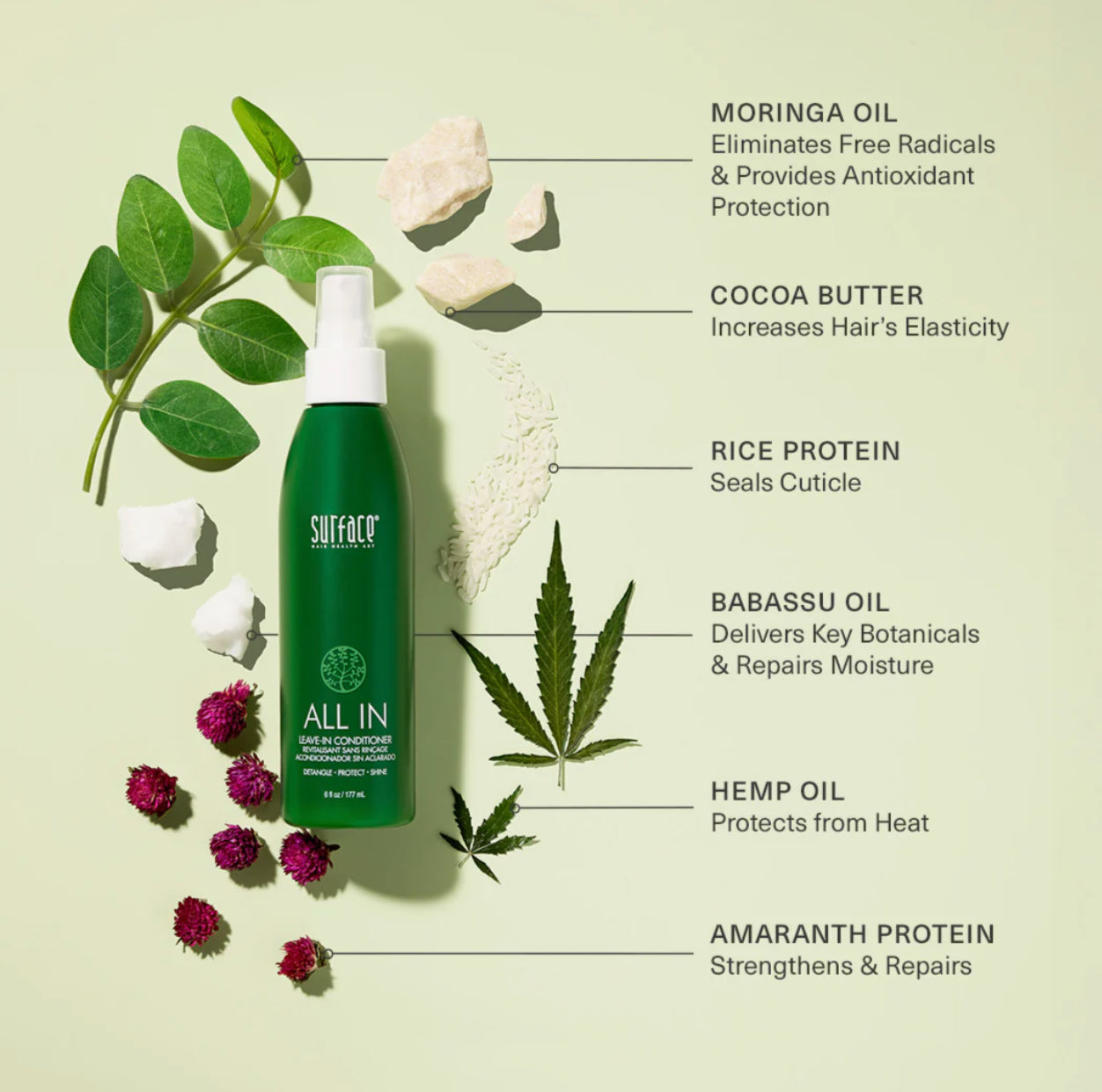 Instantly detangle, condition, strengthen, moisturize, repair, shine, soothe, color protect, heat protect, frizz control, eliminate static and prevent breakage on all hair types